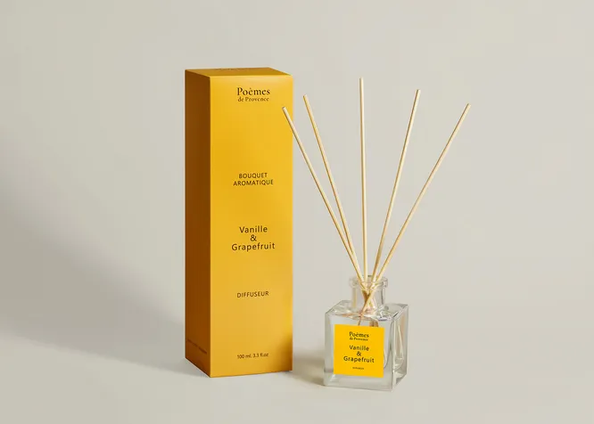 В диффузорах этого бренда используют этиловый спирт, который не имеет вредных испарений. Чистый, натуральный аромат розмарина, лимона и нероли не слишком навязчив, свежий и полупрозрачный, взбодрит и поможет сконцентрироваться, подчеркнет стиль и утонченность интерьера. Ароматического диффузора объемом 85 мл хватает на 1-3 месяца, в комплекте 5 палочек из ротанга.