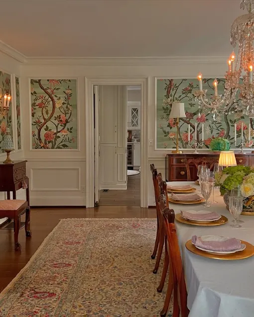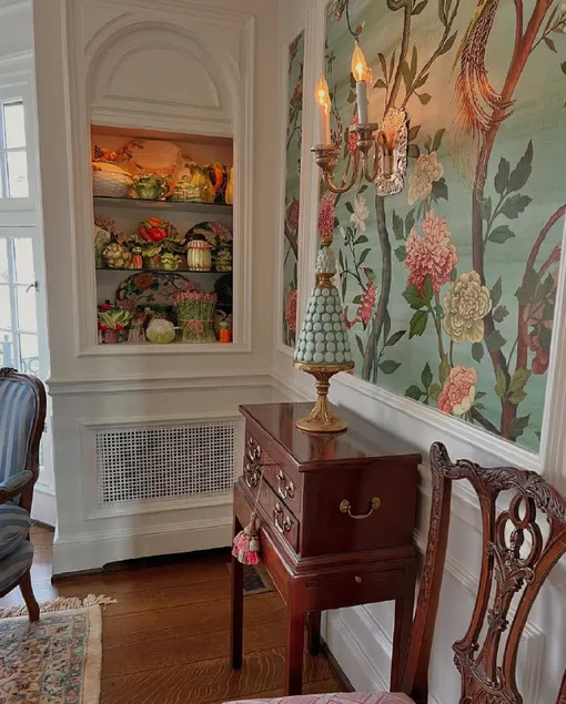 Grandmillennial любит всё натуральное: тканевые обои, дерево, фарфор, хрусталь. То, что ассоциируется с чем-то настоящим, дорогим по духу, а не обязательно по цене.