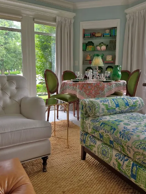 Главная «фишка» Grandmillennial как раз в умении смело сочетать предметы из разных эпох. Например, рядом с тяжёлым дедушкиным креслом может стоять современный кофейный столик из стекла. И такое соседство не только не мешает, а наоборот — подчёркивает индивидуальность и эклектичность пространства.