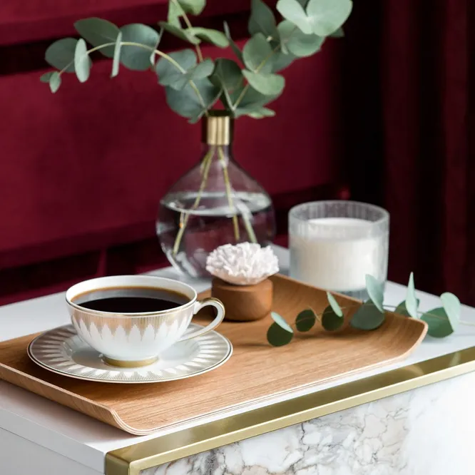 Этот поднос для сервировки или для украшения гостиной изготовлен из натуральной древесины ясеня. Идеально подойдет для завтраков в постели или перекусов у телевизора, а также станет стильным дополнением любого современного интерьера.