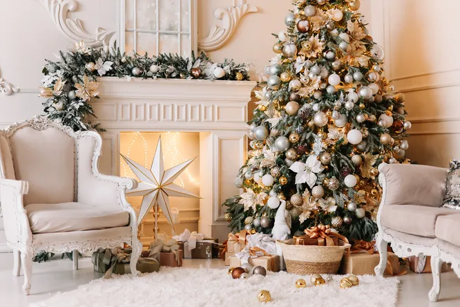 Представьте себе огромные леденцы, гигантского Щелкунчика или светящегося оленя, искусно расставленных под ветками. Тематический реквизит всегда выгодно смотрится в новогоднем интерьере, а его крупный размер отражает тренд на максимализм.