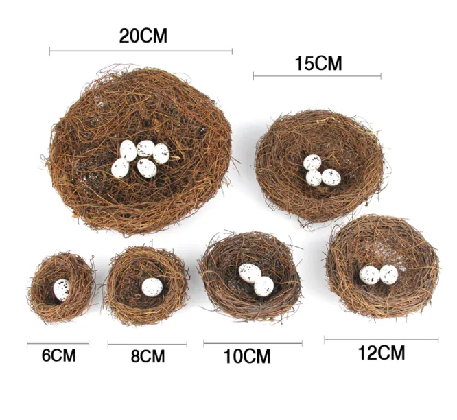 Декоративные гнезда разных размеров от 6 до 20 см в диаметре могут пригодиться, чтобы оформить интерьер квартиры, офиса или загородного дома к празднику. Отличная идея для хранения окрашенных яиц и на праздничном столе, и на кухонной столешнице, и на подоконнике. Вам останется только выбрать подходящий размер.