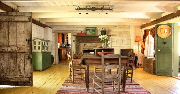 Бревенчатый дом, спрятавшийся в лесной глуши. Тёплый камин. Идеальное сочетание исторического стиля и старинного декора. В этом месте хорошо бы оказаться в снегопад...