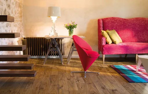 Полы коричневых тонов образуют невидимую связь с землей и природой. Они замечательно оттеняют мебель, исполненную в деревенском стиле, а также подчеркивают выразительные броские цвета, присутствующие в интерьере.