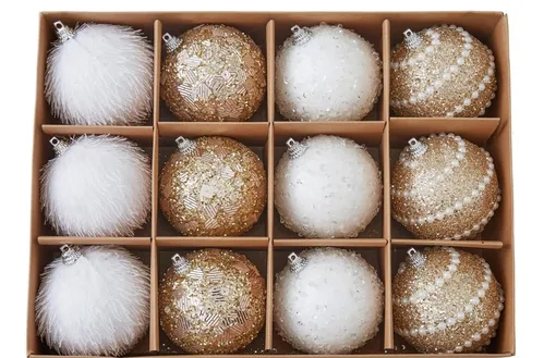 Акцент в декоре делаем на золотые тона, чтобы создать элегантный и изысканный образ и придать ели роскошный и благородный вид. И наконец украшаем дерево гирляндой из белых лампочек тёплого света.