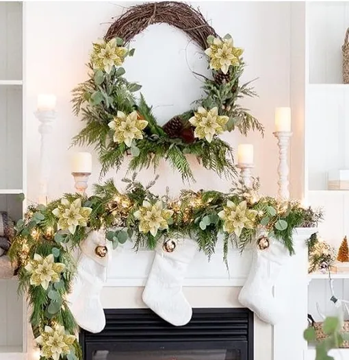 Чтобы повторить классический дизайн звезды, выбираем винтажные украшения, например, фарфоровые фигурки ангелов, которые добавляют особое очарование и создают атмосферу праздника.