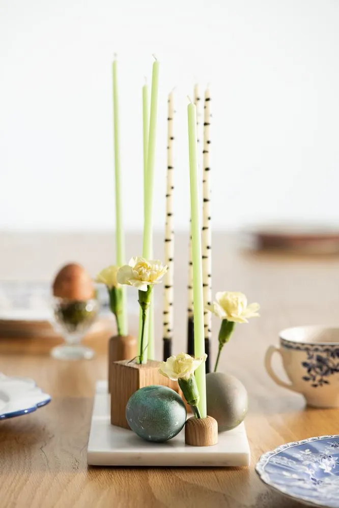 Используйте по максимуму базу посуды, которая у вас и так уже есть, добавляя незначительные детали. Например, пашотница-пончик добавит весенних красок и сразу поменяет настроение, а дополнить сервировку и поддержать пастельную гамму можно лентами, плейсматами, сервировочными салфетками и тонкими свечами. Получится идеально!
