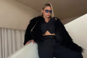 Столешница и стеновая панель изготовлены из искусственного камня — оттенок добавляет брутальности и интересно сочетается с черной стеной, светло-серой мебелью кухни и деревянными фасадами. А дополнительные акценты создаются за счет розеток и трекового освещения, для этого здесь продумано несколько световых сценариев.