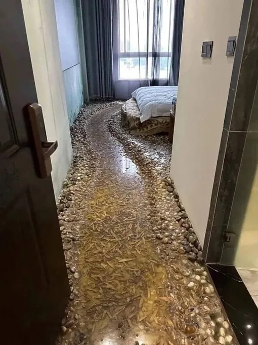 «Как будто канализацию прорвало»: россиянин сделал дизайнерский пол в квартире, но результат получился спорным