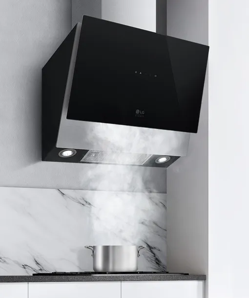 Премиальный дизайн вертикальной вытяжки с черным бесшовным стеклом добавит элегантности всему интерьеру кухни. Ее отличает максимальная эффективность и низкий уровень шума. Экономичные светодиодные лампы обеспечат локальный свет в зоне приготовления, а пятислойный алюминиевый фильтр надежно защитит от влаги, пара и запахов.