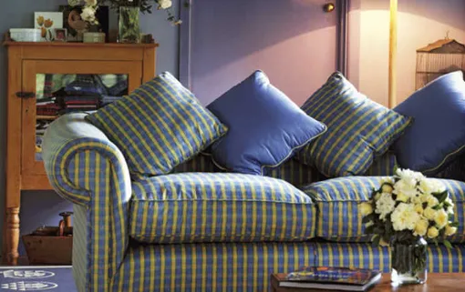 В поддержку предметов мебели с клетчатой обивкой могут выступить шторы из той же ткани или идентичная расцветка других предметов интерьера: абажуры светильников, покрывала, столовый текстиль и даже обивка стен.