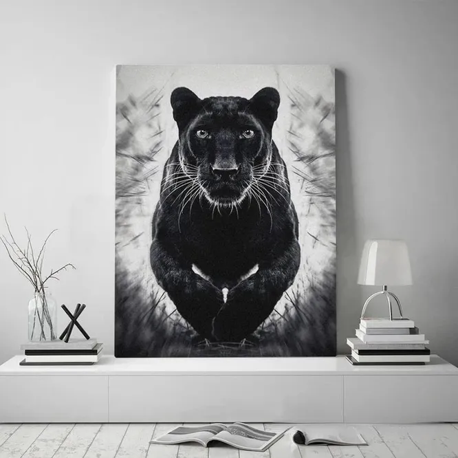 Чёрно-белый портрет пантеры пантеры — якорь, удерживающий дизайн от полного растворения в атмосфере ретро. В это необычном интерьере вещи с историей и предметы современности создают на удивление гармоничный дуэт. Кроме того, монохромная фотография, как и чёрно-белая живопись, визуально увеличивают пространство. Изысканная деталь, объединяющее необъединимое в этом дизайне — хрустальная люстра. Этот элемент роскоши в вечернем свете будет дарить мягкое сияние, которое сделает комнату ещё уютнее.