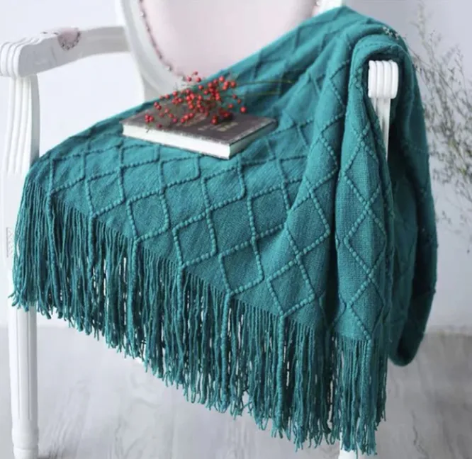 Элегантное, с минималистичным вязаным рисунком в виде ромба и длинной бахромой, это покрывало станет ярким акцентом для интерьера в скандинавском стиле, но и не будет «спорить» с классическими линиями. Изготовлено из окрашенной пряжи. Отлично подойдет не только для дома, но и для путешествий или пикника.