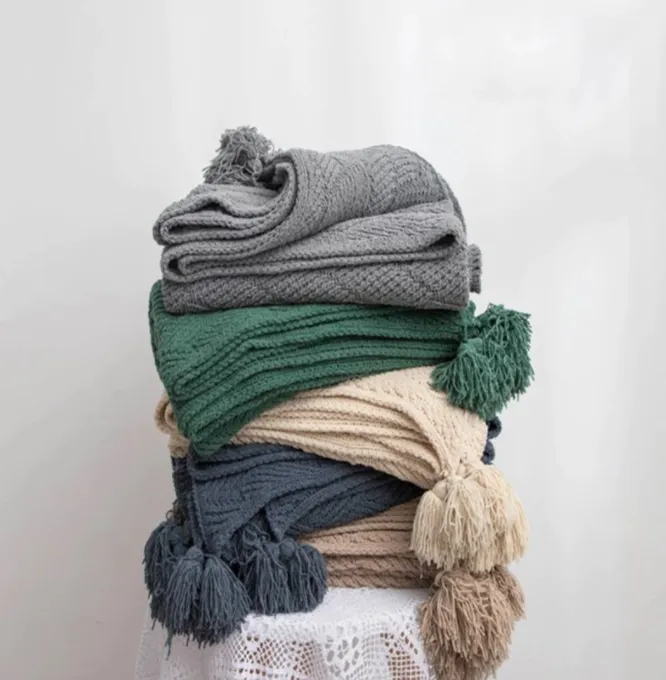 JUSS FORT, Вязаное покрывало с бахромой в скандинавском стиле, 4474 руб