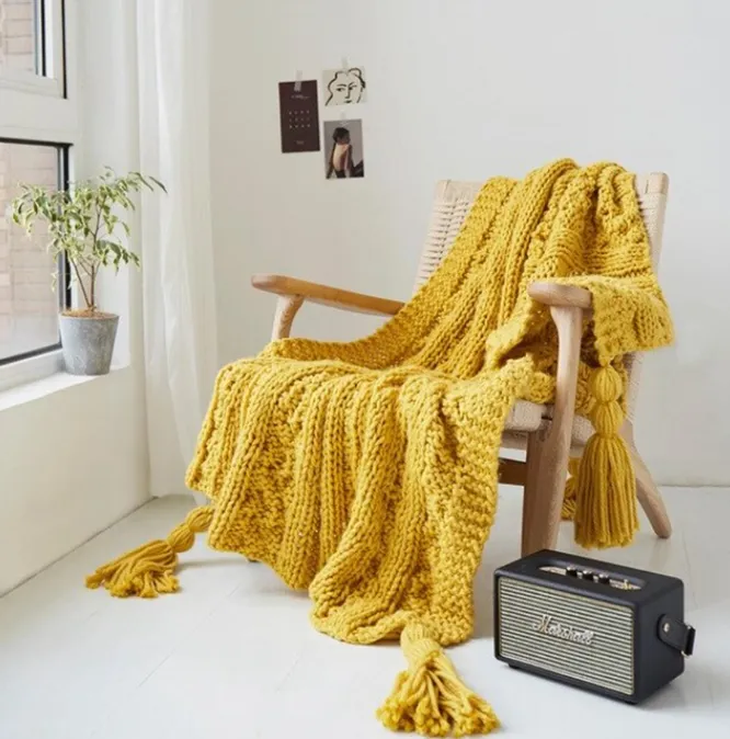 Натуральные материалы — тренд, который плотно поселился в направлениях интерьера в 2020 году. И он вовсе не собирается заканчиваться, а лишь набирает обороты! Это мягкое вязаное покрывало ручной работы с объемными кисточками «в компании» с травяным чаем и любимой книгой — ваше спасение от лютых зимних вечеров и серости за окном. Представлено в лимонно-горчичном и персиково-бежевом оттенках.