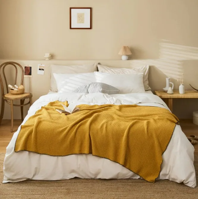 Изготовлено из 100%-ного хлопка. Подходит как для пикника, так и для украшения интерьера или просто уютных вечеров у камина или на диване с любимой книгой. Представлено в модных расцветках, которые будут отлично гармонировать с любым интерьером: в оттенке марсала, горчичном, карамельном, глубоком синем и бежевом цветах.