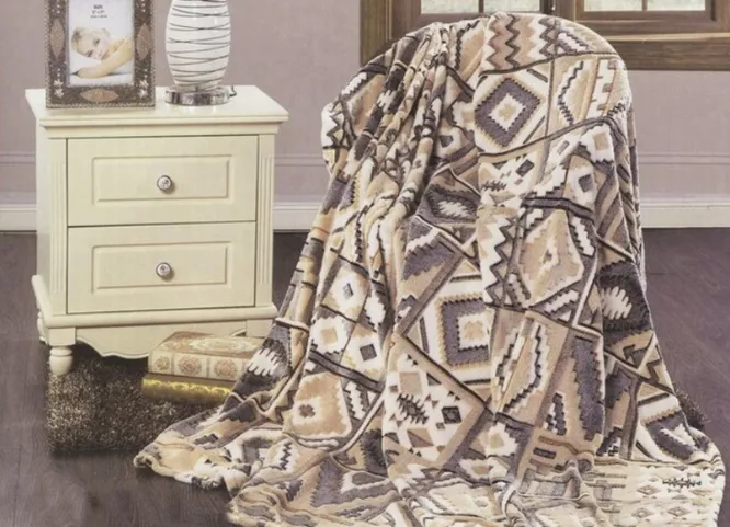 Этот плед для любителей всего необычного. Мягкие приглушенные карамельно-сливочные оттенки в сочетании с контрастным орнаментом позволят оживить даже самый скучный интерьер и почувствовать его обладателю связь с далекими предками!