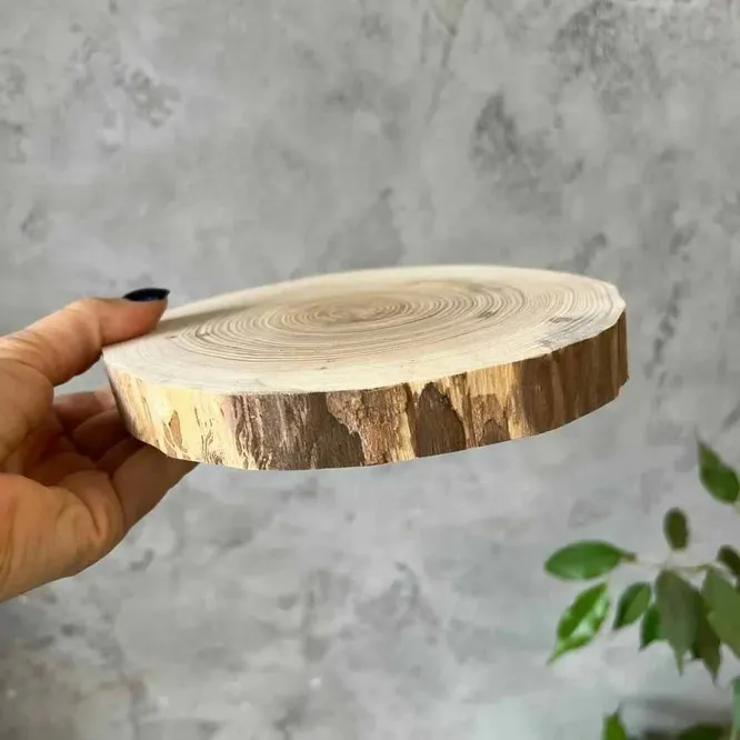 Эффектно смотрятся в праздничной сервировке лиственница и карагач — правда, изделия из дерева этих пород стоят дороже. Выберите обработанные и тонированные спилы, чтобы их было легче связать с остальным декором. А если хотите придать сервировке грубый шарм, обратите внимание на натуральные срезы с корой и трещинами.