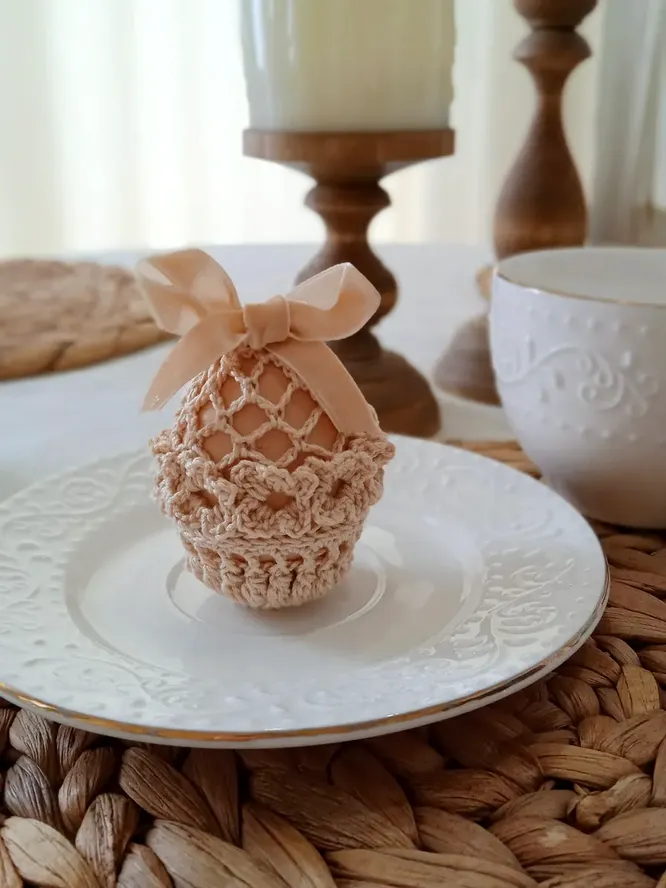 Если не планируете использовать красители в этом году, но хотелось бы соблюсти традиции, можно «нарядить» пасхальные яйца в кружевные чехлы. Тренд пришёл к нам из Pinterest, и с таким декором даже в натуральном виде яйца выглядят очень торжественно. Подайте их индивидуально и готовьтесь отвечать на многочисленные вопросы — каждому захочется узнать, где вы взяли такой декор.