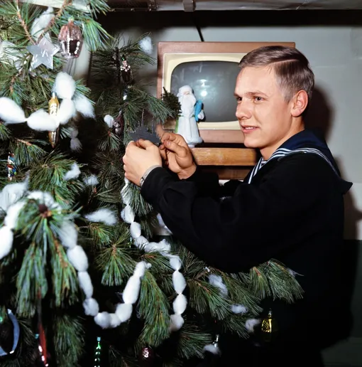 «Ёлку, кроме игрушек, у нас украшали конфетами. "Мишка" и "Красная Шапочка" висели на тонких ниточках, и их нельзя было есть до самого Нового года. Мандарины тоже вешали прямо на ёлку — именно 31 декабря. На верхушку новогоднего дерева ставили красную звезду, а под ёлку — "снег" из ваты и марли. Комнату украшали гирляндами из флажков. Я вырезал их по трафаретам из цветной бумаги и аккуратно склеивал на верёвочке. Но больше Нового года я ждал каникул — а точнее, того, что папа будет только мой, то есть не будет работать, как обычно. Мы ходили в лес, кормили уток, лепили снеговиков, строили крепости и подкопы, катались на коньках, лыжах, санках, кормили белок, вытряхивали ковёр, по которому потом можно было прыгать. Он разрешал прыгать с дерева в сугроб (в отличие от мамы).