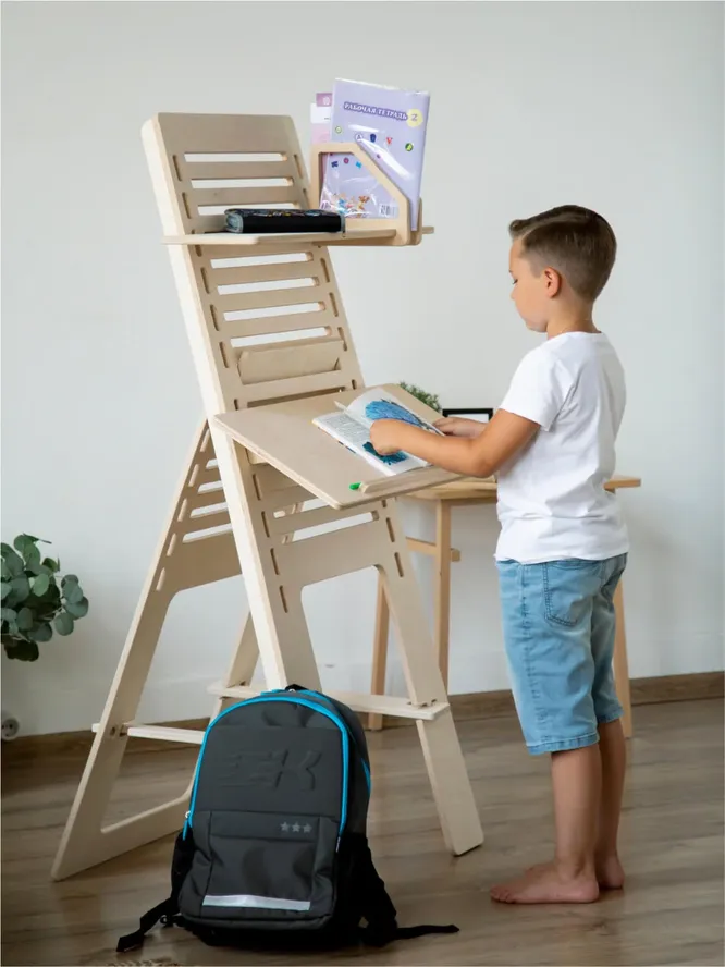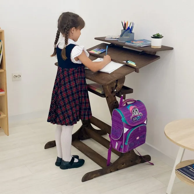 В последнее время появились умные столы-трансформеры, за которыми можно работать стоя. Считается, что любому человеку полезна во время работы или учебы смена позы, это положительно сказывается и на концентрации внимания, и на осанке, и на самочувствии.