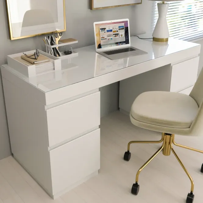 Вторая необходимая вещь – это гибкое стекло. Кладут его обычно на обеденные столы или столешницы, но для парты школьника тоже подходит идеально, особенно если у вас дети учатся в младшей школе, много рисуют, лепят или вырезают. Ну и под стекло убрать что-то вроде расписания на неделю или таблицы умножения – тоже удобно. Опять же, легко моется, защищает поверхность стола от влаги, царапин и пятен. Есть варианты прозрачные, есть матовые и полностью чёрные.
