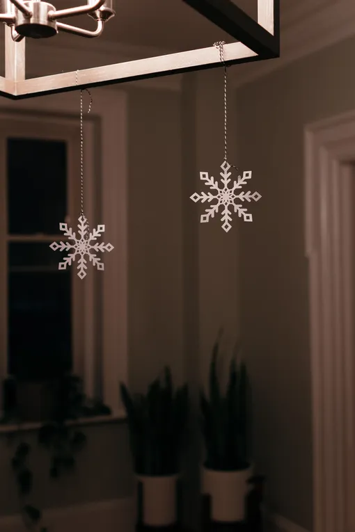 —Один из самых приятных способов украсить дом к праздникам — это добавить праздничные детали к светильникам, — говорит Мари. — Добавьте красивый бант на подвесные светильники или свисающие снежинки с люстры. Это простой способ придать помещению праздничное настроение.