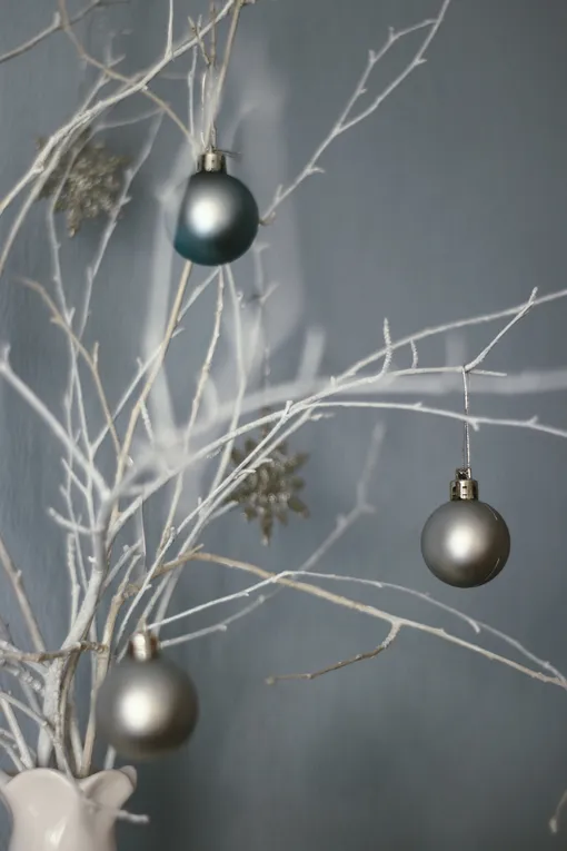 Если вы хотите сделать ещё один шаг вперед, то можете развесить на ветках и стеблях приманки, сосновые шишки, покрытые металлизированной краской, или бумажные украшения, чтобы придать им ещё больше рождественского настроения.