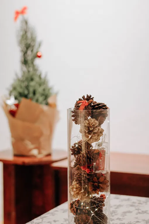 Лучший способ бесплатно привнести в дом праздничную атмосферу — это поиск листвы. Из плюща, ягод и трав можно сделать всё: от гирлянды до центрального украшения новогоднего стола. Листвой также можно украсить серванты и консоли: поставить сосновые шишки в чаши, стебли и ветки в вазы, озеленить оконные рамы и зеркала.