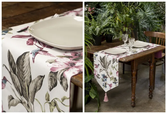 Хотя 8 марта миновало, впереди ещё много праздников. Стильная дорожка с крупным флористическим принтом придаст торжественности сервировке, даже если посуда выглядит недорого и просто.