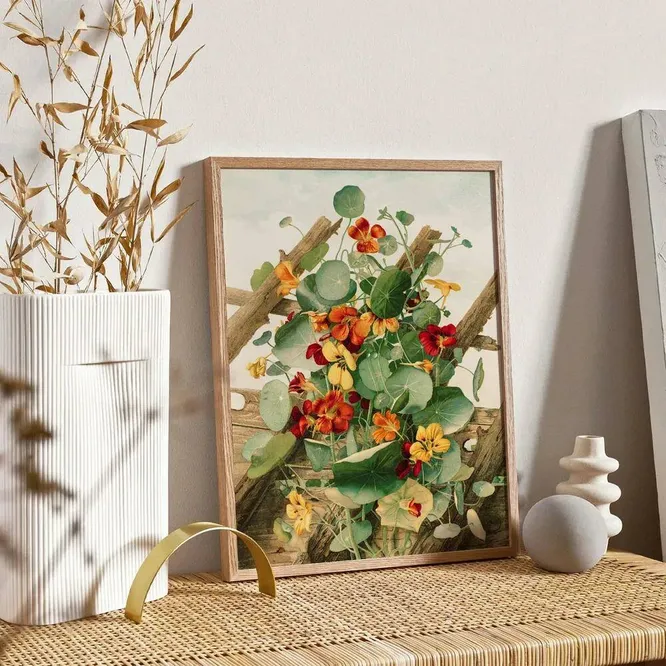 Какая весна без цветов! Стильный постер с изображением настурции добавит уюта и тепла в интерьер в стиле рустик, эко, прованс или кантри.