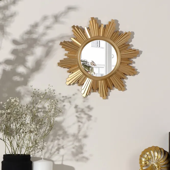 Маленький символ солнца умножит количество света, поступающего в ваш дом через окна. Усилить эффект можно, организовав на стене панно из зеркал. Таких небольших (диаметр зеркала всего 11 см) потребуется от трёх до пяти в зависимости от размеров помещения.