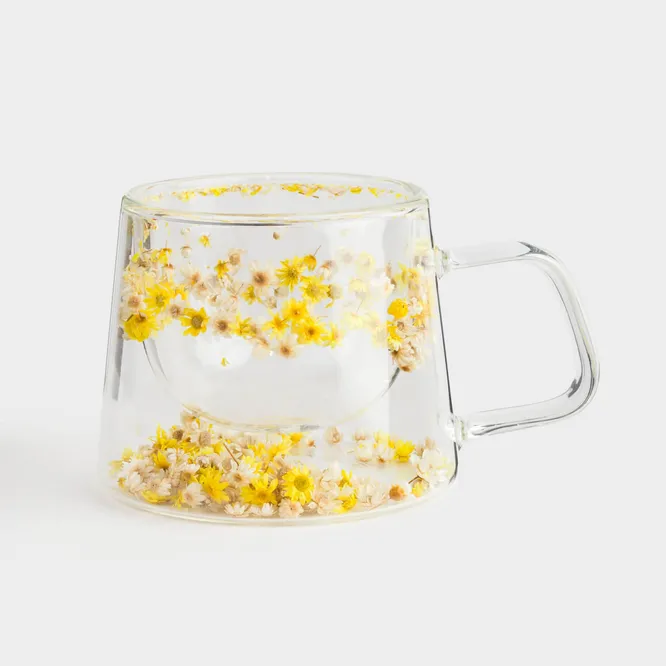 Изобретение посуды с двойными стенками открыло массу возможностей для дизайна. В пустующее пространство помещают блёстки, мелкие фигурки, цветную жидкость и другой декор. Можно и сухие цветы — чтобы весна и лето оставались с вами круглый год!