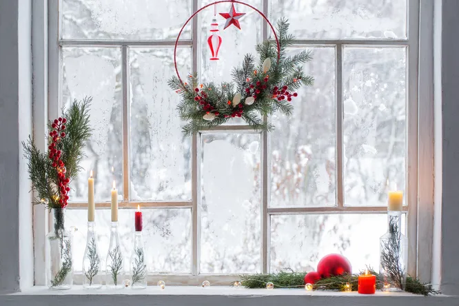 Свечи на подоконнике всегда создают атмосферу тепла и уюта, особенно в праздничные дни. Разместите рядом несколько свечей разной формы и высоты — так композиция будет выглядеть естественно и современно. Можно сочетать новые и винтажные подсвечники, использовать разные материалы – стекло, керамику и т.д. Лёгкое несоответствие стилей здесь только приветствуется. Только не забывайте, что настоящие свечи нельзя оставлять без присмотра. Если на окне шторы или рядом стоит ёлка, лучше выбрать светодиодные подсвечники или LED-свечи: они отлично имитируют мерцающий огонь и совершенно безопасны.