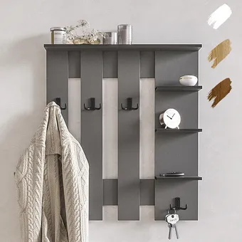 Ещё одна идея — настенные органайзеры с крючками, мини-полочками или, к примеру, встроенными корзинами, которые помогают выжать максимум функциональности из минимального куска стены.