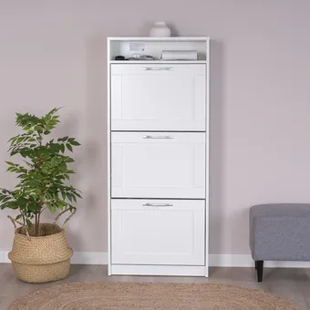 Вам хотелось бы больше закрытых вместительных отсеков? Тогда выбирайте стандартную обувницу или тумбу под ТВ. Вам нравится идея открытого хранения? Можно присмотреться к неглубокому стеллажу с полками, на которых разместятся корзины и контейнеры для обуви. Бюро, консоли, пеналы и мини-буфеты — любая идея может быть хороша.