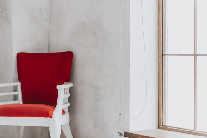 Яркие красные детали в минималистичном пространстве — ещё один устойчивый тренд. Это могут быть рамы зеркал и постеров, откосы окон или дверей, узкие шторы и декоративные подушки. Главное — не переборщить: красный должен оставаться акцентом, а не играть главную роль.