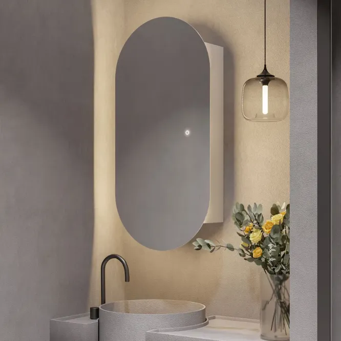 Зеркало — обязательный элемент ванной комнаты, поэтому его можно совмещать с местом для хранения. Зеркальные шкафчики компактны, но при этом достаточно вместительны для хранения мелочей, таких как косметика, зубные щётки или лекарства. Благодаря зеркальной поверхности они визуально расширяют пространство, что особенно полезно в маленьких ванных.