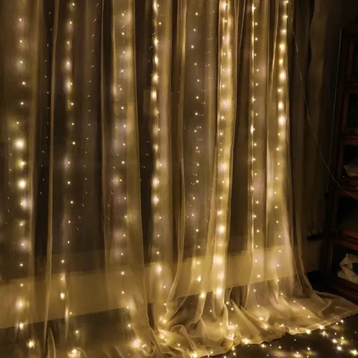 Совет эксперта: личный лайфхак – гирлянда-занавес, закреплённая на потолке. Эта идея появилась у меня несколько лет назад. Гирлянда имитирует звездное небо и всегда вызывает много восторгов у гостей. Благодаря отличному качеству и долговечности, она радует уже пятый сезон подряд, до сих пор не снимаю!