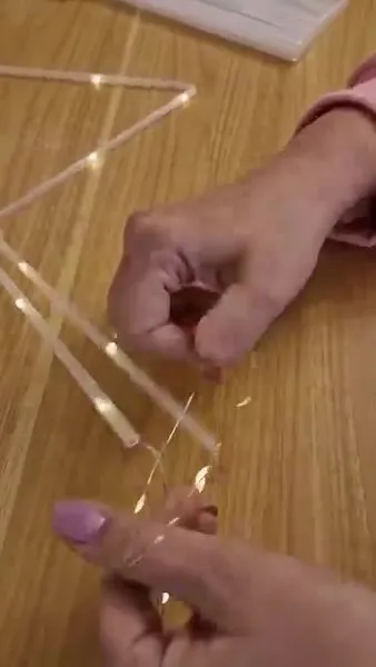 Простые пластиковые трубочки для коктейлей тоже можно превратить в оригинальное новогоднее украшение. Вам понадобится пять трубочек и гирлянда-нить. Проденьте гирлянду через трубочки, а затем сложите их в форме звезды. Такая звезда выглядит эффектно и может стать ярким акцентом декора.