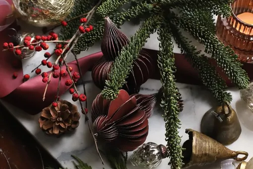 Возьмите втулки и нарежьте их на одинаковые кольца-цилиндры. Затем склейте элементы между собой, формируя звезду или цветок. Такое украшение можно покрасить или оставить в натуральном виде.