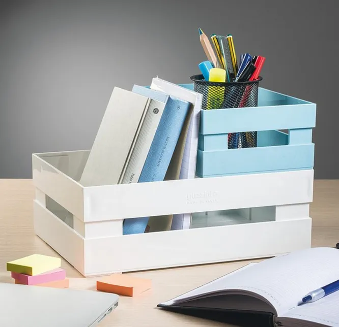 Классический органайзер из двух ящиков из коллекции Tidy & Store от итальянского бренда Guzzini. Поможет упорядочить любые предметы и компактно их хранить. В таких ящиках можно разместить документы и канцелярские принадлежности, инструменты, книги и даже фрукты и наборы для специй. Размер большого ящика: 30,5*22,5*11,5 см, малого — 22,5*15,5*8 см.