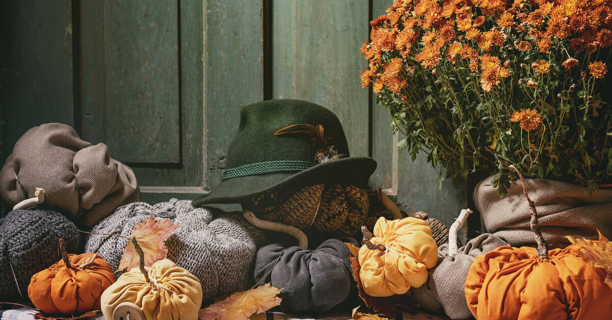 Несложно сделать тыкву из куска ткани. Простой мастер-класс на своей странице выложила блогер detgulahuset. Вырежьте из ткани небольшой круг, прошейте длинными стежками по краю и наполните ватой. Стяните, обвяжите заготовку шпагатом крест-накрест, чтобы сформировать характерные тыквенные дольки. Вставьте в отверстие палочку — и готово, получилась очаровательная текстильная тыковка.
