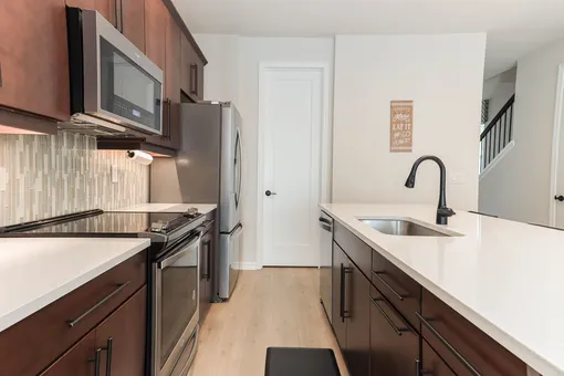 Лучше всего создавать на кухне открытую планировку со светлыми шкафами, которые отражают свет. К тому же, минималистические гарнитуры усиливают естественное освещение и создают ощущение более открытого пространства.