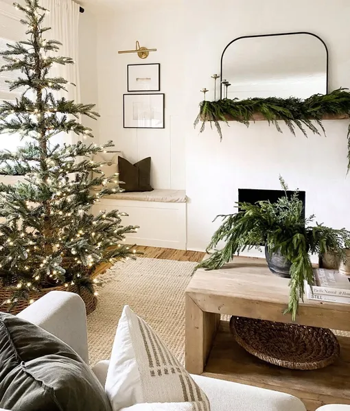 Ещё недавно новогодние ёлки с тонким стволом и редкими, слегка «растрёпанными» ветками считались некрасивыми (если не уродством), а сегодня — в тренде. Такие деревья нередко выглядят немного неряшливыми и асимметричными, но именно это сейчас воспринимается как глоток свежего воздуха и часть эстетики а-ля натюрель: естественной и живой.