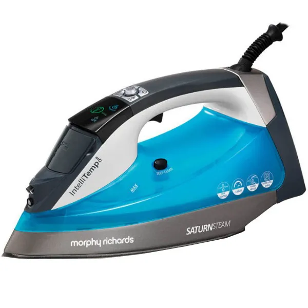 Это интеллектуальный утюг британского производителя бытовой техники Morphy Richards. Он может самостоятельно подбирать подходящую температуру для глажения и уровень расхода пара в зависимости от типа ткани. У утюга есть встроенный парогенератор и 485 отверстий в подошве. Паровой удар 230 г/мин, система самоочистки (есть стержень от накипи) и автоотключения, объём резервуара для воды 350 мл, длина шнура 3 м.