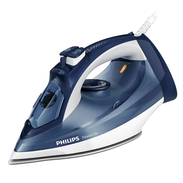 Утюг Philips GC2996/20 мгновенно достигает установленной температуры. Из плюсов: хороший вес, лёгкое разглаживание, функция автоотключения, пятислойное покрытие, которое не допускает случайной порчи ткани. Вода во время глажения не подтекает, противокапельная система перекрывает подачу воды при низкотемпературной глажке. Есть функция самоочистки. Ёмкость для воды — 320 мл, паровой удар 150 г.
