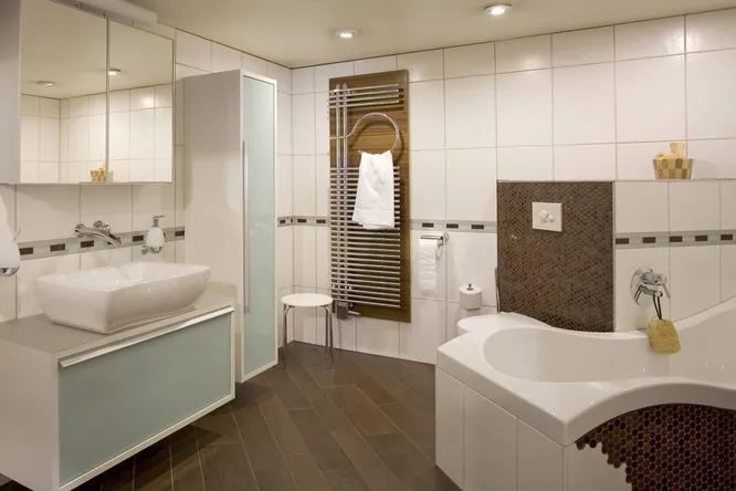 В 2026 году ванные комнаты захватывает «материальное насыщение». Плитка выходит за пределы душевой зоны, а иногда даже за пределы стен. «Плитка до потолка подчеркивает высоту ванной комнаты и может визуально увеличить небольшое пространство. Такой эффект роскоши легко достичь с минимальными дополнительными усилиями», — отмечает дизайнер интерьера Шамика Линч.
