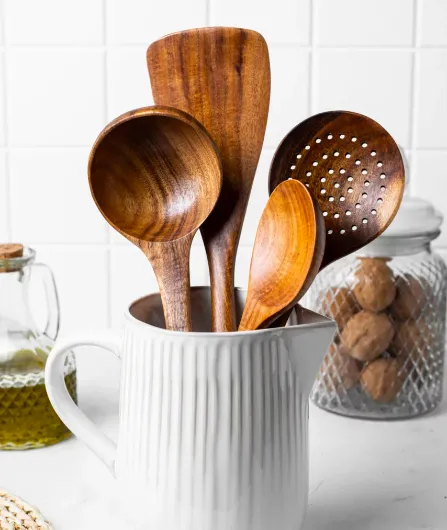 Древесина акации – один из ценнейших материалов. У неё потрясающие свойства, и предметы для кухни не рассыхаются и долго служат. Каждая лопатка, ложка, шумовка и лопатка идеально отшлифованы, будет приятно держать в руках.