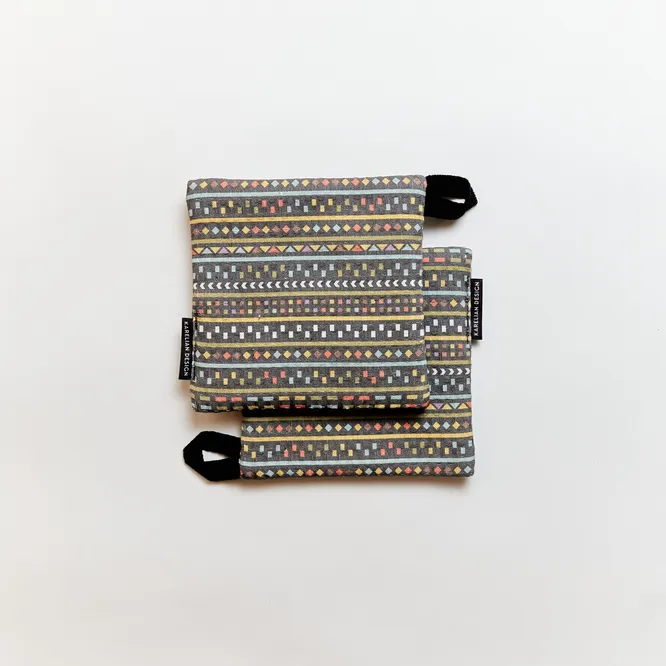 А это не просто прихватки. Паттерн разработан на основе орнамента, вышитого гладью ручную в девятнадцатом веке, из фондов Национального музея Республики Карелия. Выполнены из натурального льна — экологичного, долговечного, текстурного и тактильно приятного материала.
